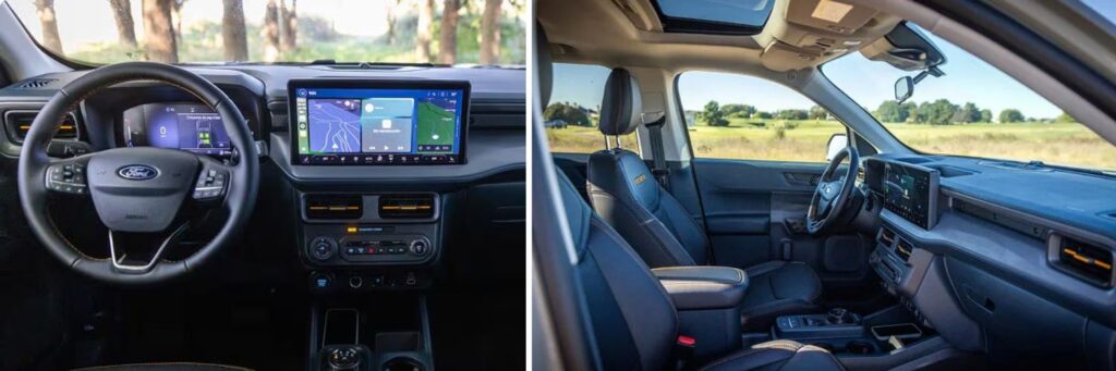 En su interior, la Ford Maverick XLT ofrece una experiencia moderna y conectada. Su pantalla multitáctil de 13,2” con SYNC®4 permite vincular tu smartphone mediante Android Auto y Apple CarPlay inalámbrico, además de contar con sistema de control por voz para que no tengas que soltar el volante.